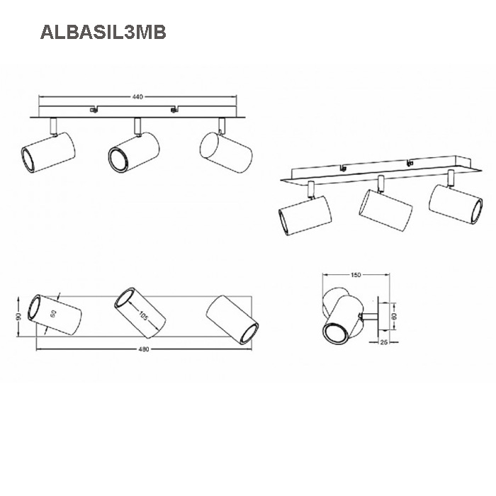 | Casquillo/Portalámparas | 3xGU10 Orientable |