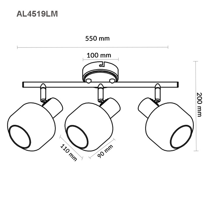 Regleta Aplique Glass3 Focos Orientables Color Negro [AL4519LM]